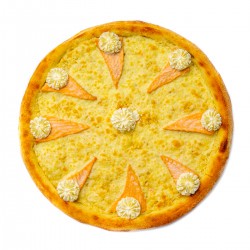 лосось, сыр творожный, соус на основе краба, сыр моцарелла, тесто